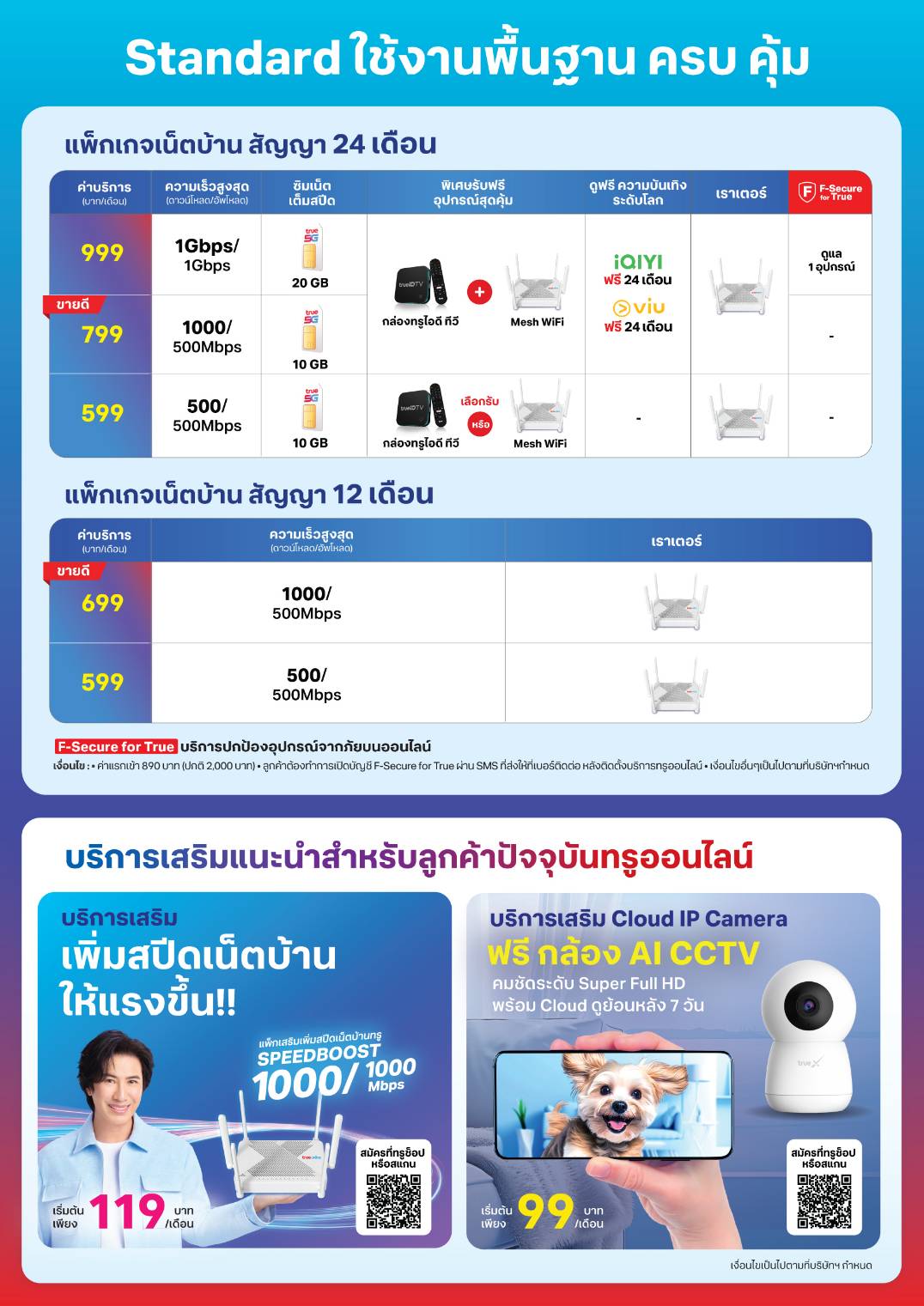 ติดเน็ตบ้านทรู สัญญาการใช้งาน 6 เดือน / 12 เดือน / 24 เดือน
